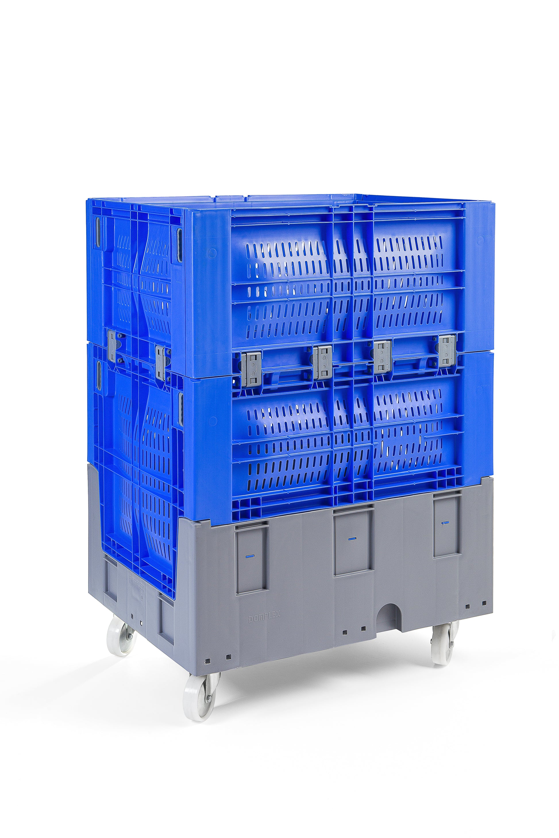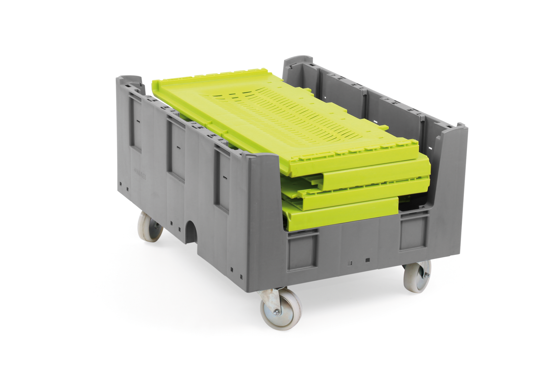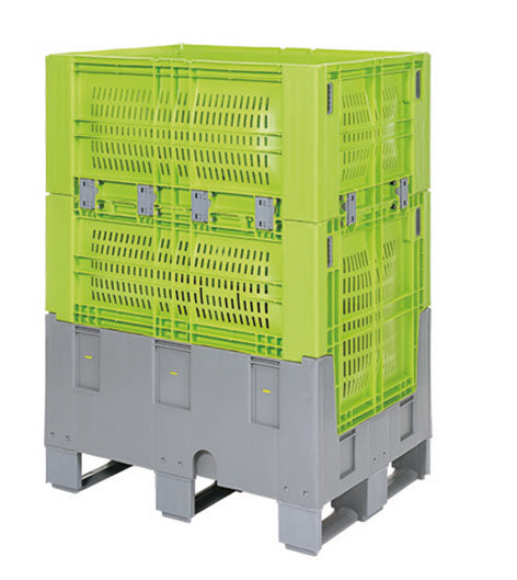 Contenedor palet de 392L, 800x600x1100mm, duradero, apto para alimentos y compacto vacío. Ideal para transporte y almacenamiento sostenible.